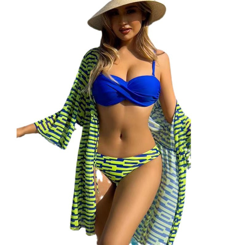 Bikini Mesh Three-piece Printed Swimsuit For Women